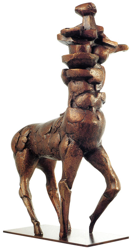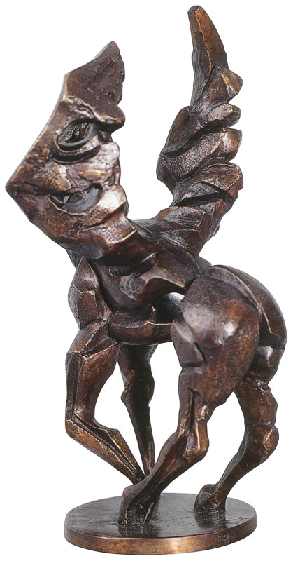 (Cheval fabuleux, né de la roche éclatée par les éléments déchaînés.)