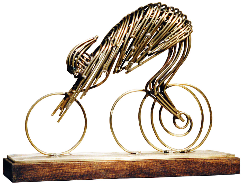 Notez l'absence de « u ». Maurice Guillaume a livré cette première et remarquable version. La tête du coureur est protégée par un casque de son temps : « à boudins. »