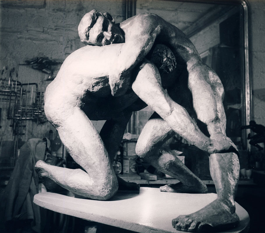 il a du muscle. Une hydre, on ne compte plus ses têtes. Cet animal fabuleux, c'est la mêlée. Maurice Guillaume a choisi la phase la plus collective de ce sport pour l'évoquer. Car il s'agit, ici encore, d'évocation et non de figuration. »